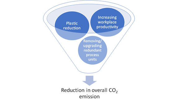 - Identifying redundant/unnecessary process units and upgrading, taking into consideration the positive impact it could have on greenhouse gas emissions.